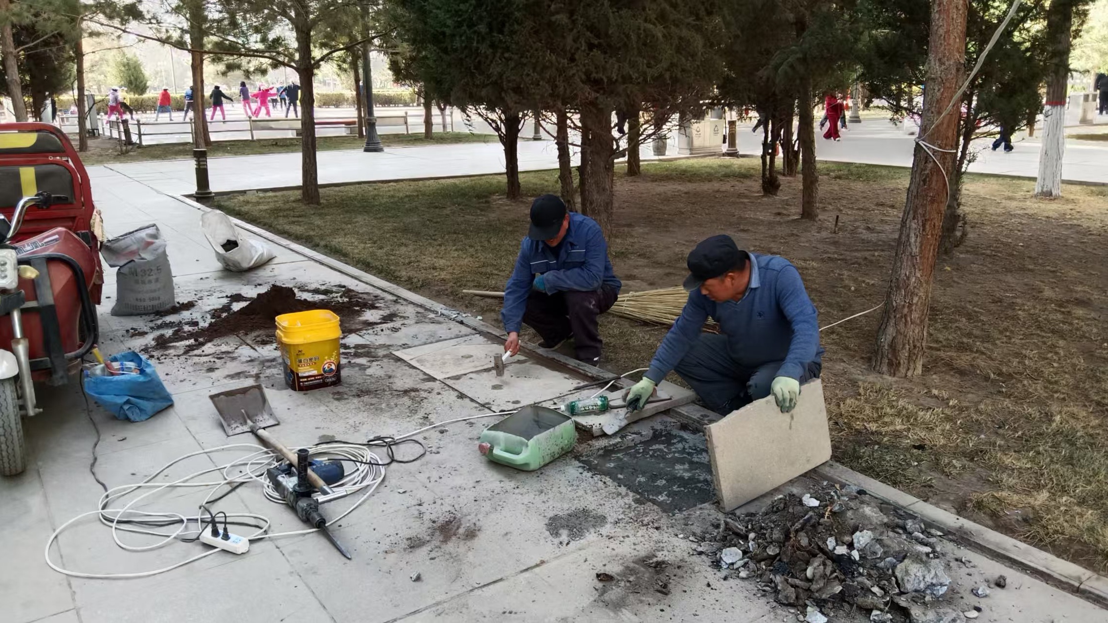 为切实保障市民出行安全,提升公共服务水平,甘州区广场综合服务中心工作人员对地面破损、地砖下沉等情况进行了全面排查统计,安排专业人员对受损大理石砖开展维修、更换与平整作业,精准修补广场设施“创伤”,全力消除安全隐患,共维护维修破损地面9处,40多平方米。