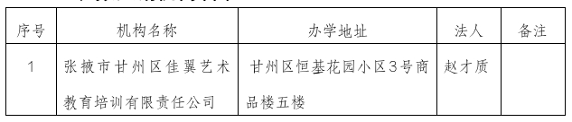 甘州区教育局关于注销张掖市甘州区佳翼艺术教育培训有限责任公司办学许可证的公示