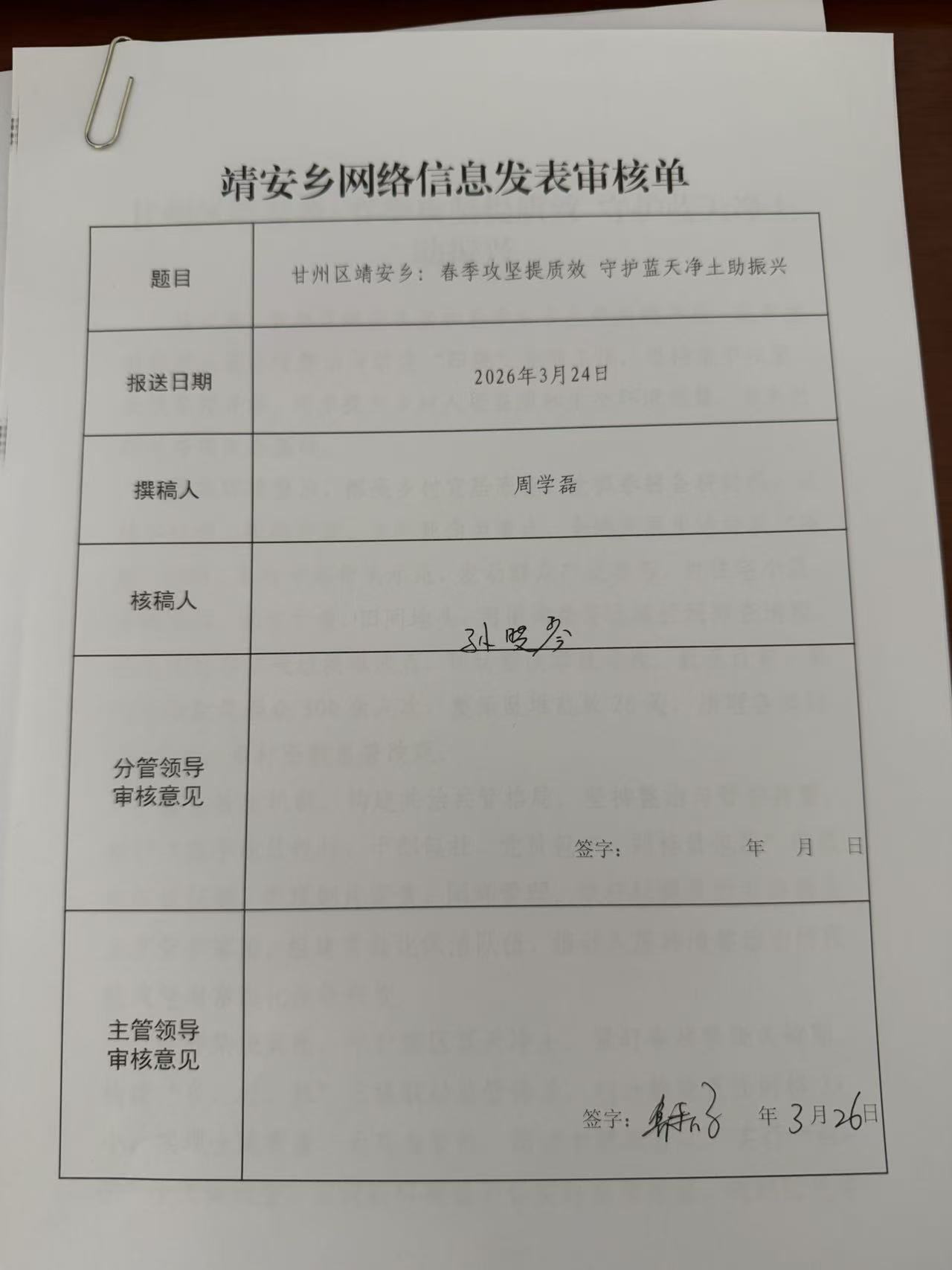 甘州区靖安乡:春季攻坚提质效 守护蓝天净土助振兴